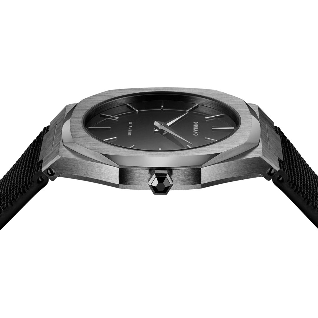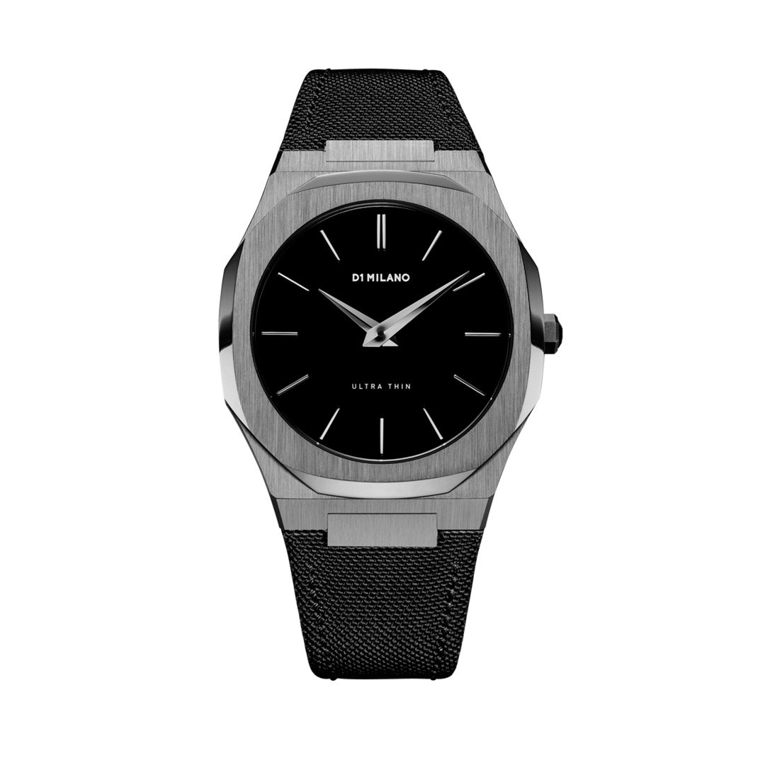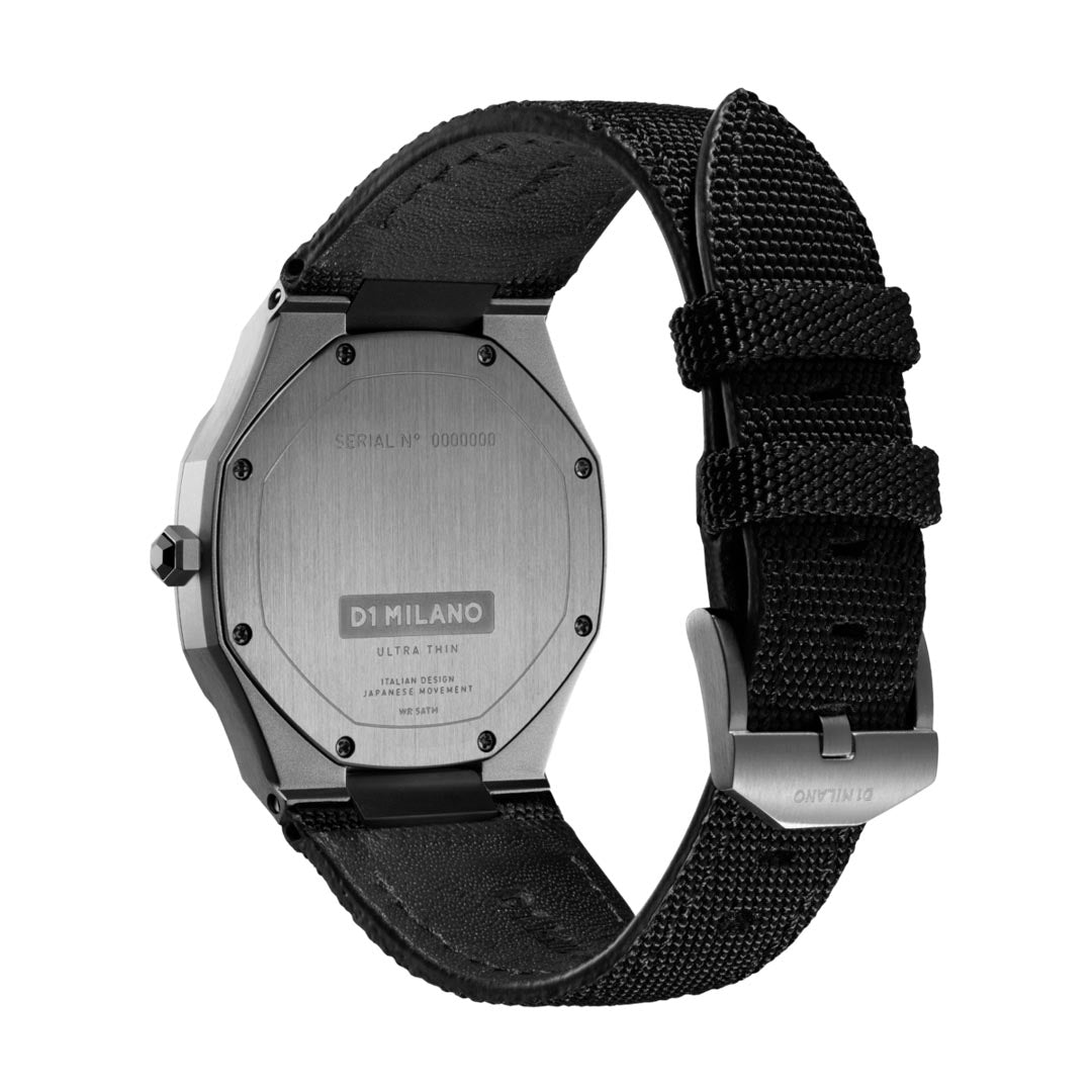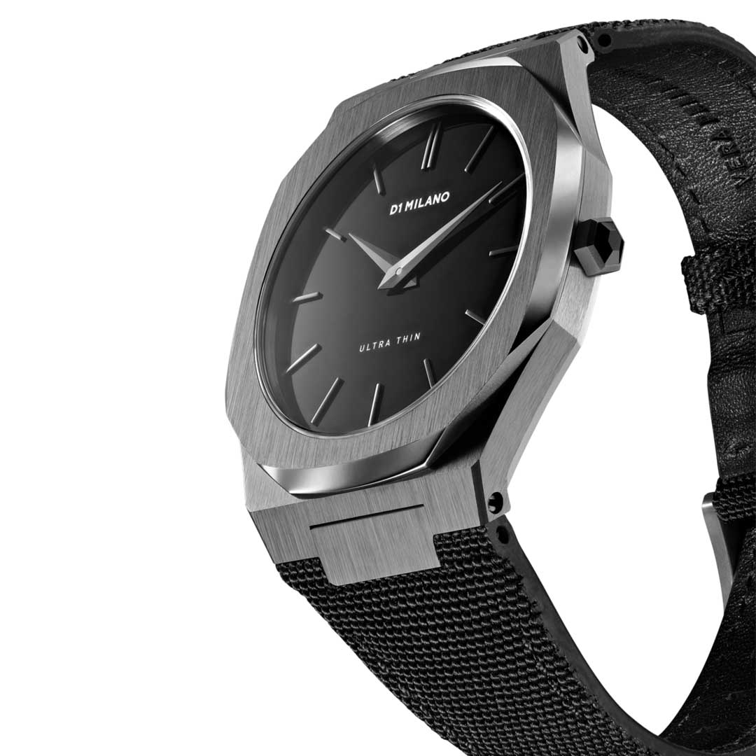 Orologio D3 Ultra Thin 2019 continuous ip gun case - black nylon strap con cassa di colore canna di fucile in acciaio inossidabile 316l e cinturino di colore nero in nylon con fodera in pelle naturale. Diametro cassa 40 mm, spessore 7 mm, larghezza cintura 25 - 16 mm. Movimento citizen miyota 1l22. Resistente all'acqua fino a 5 atm. Quadrante nero con dettagli canna di fucile. Vetro zaffiro con finitura antiriflesso blu. Fibbia a coda in acciaio inossidabile 316l.